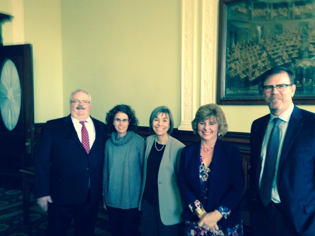 Among the staunch supporters of the Drowsy Driving Prevention Project over the years have been (left to right) Attorney/Lobbyist Stephen Roche; former state Representative and legislative champion Denise Provost; Mary Maguire of AAA Northeast; and Jeff Larson, Director of Highway Safety for the Commonwealth of Massachusetts.